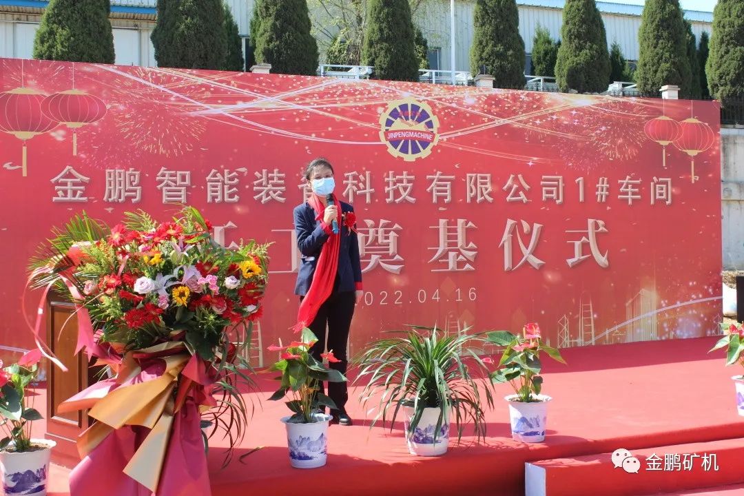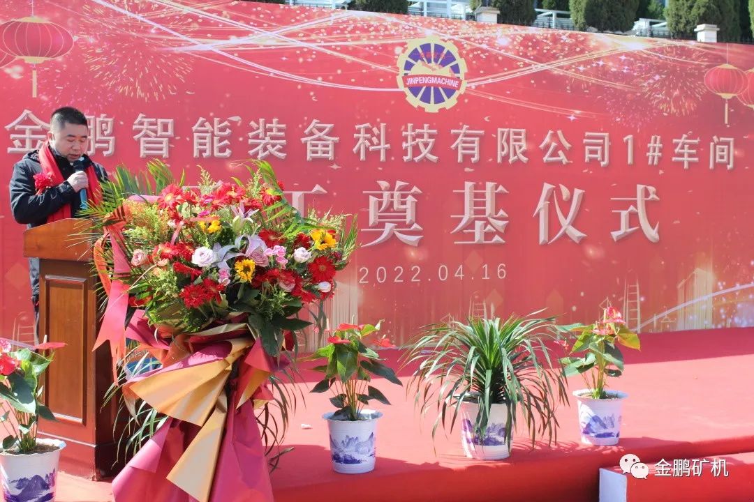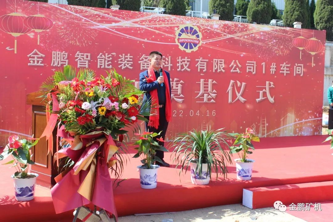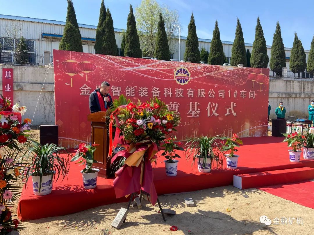 奠基儀式上,金鵬礦機總經理許慶硯要求,各參建單位精心組織,規范管理,安全施工,堅持高標準、高品位開發建設,把金鵬智能裝備項目打造成經典之作、品牌之作、榮譽之作,為金鵬的高質量發展注入新動力。