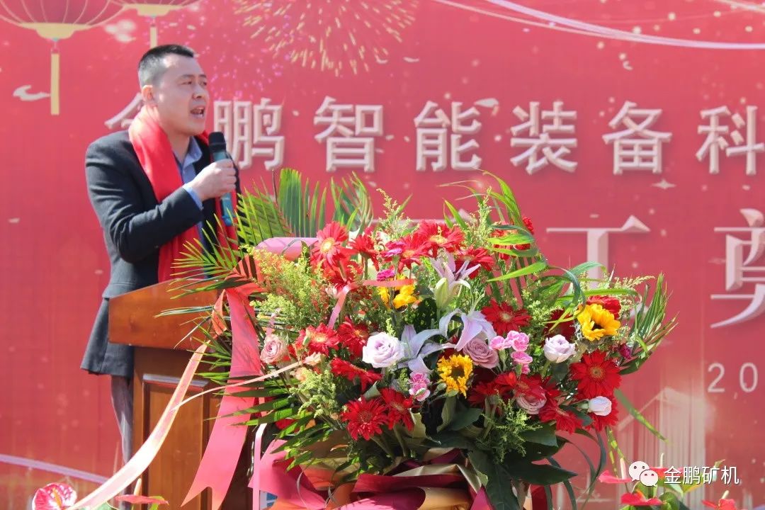儀式上,來自陜西省冶煉廠的客戶周總和蘭總也為金鵬智能裝備開工送來了衷心的祝福!他們兩位領導的發言感人肺腑,他們表示,通過和金鵬的深入合作,對金鵬人的敬業精神和牢固樹立“客戶為天”的企業理念非常認可!隨后,山東廣源集團有限公司總經理管軍、山東普萊恩工程設計有限公司劉忠國先生、元亨工程咨詢集團有限公司蓋淑君女士及各界代表等分別致辭、表態發言。